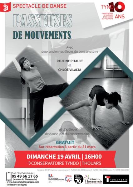À l’occasion des 10 ans de Tyndo, le conservatoire convie deux anciennes élèves danseuses, devenues professionnelles, pour un moment de partage autour de la danse avec des élèves et le public. Chloé Vilalta et Pauline Pitault se produiront sur la scène du conservatoire accompagnées d’élèves en danse jazz
